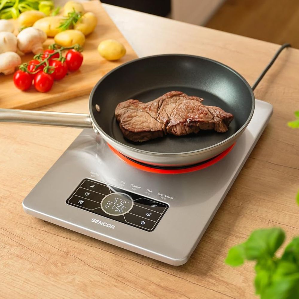 گرمایش فوق‌سریع: رسیدن به دمای ۶۰۰ درجه سانتی‌گراد در کمتر از ۲ دقیقه، سازگاری با تمام ظروف: بدون نیاز به ظروف خاص، می‌توانید از شیشه، آلومینیوم و استیل استفاده کنید، طراحی فوق‌باریک: ارتفاع کلی تنها ۳ سانتی‌متر، ۶ حالت پخت پیش‌فرض: شامل سرخ کردن سریع، عمیق، آرام‌پز، جوشاندن و گرم نگه داشتن، کارکرد بی‌صدا: با وجود توان بالا، بسیار آرام کار می‌کند، ایمنی بالا: دارای نشانگر حلقه رنگی برای هشدار سطح داغ، توان: ۱۵۰۰ وات، ابعاد: ۳۶ × ۲۵ × ۲.۵ سانتی‌متر، وزن: ۲.۷ کیلوگرم.
