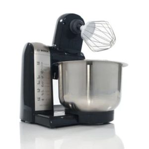 ماشین آشپزخانه بوش مدل MUM46A1 GB، 600 وات توان، سه سرعت تنظیمی، طراحی جمع و جور، لوازم جانبی متنوع برای همزدن، ورز دادن و خرد کردن.