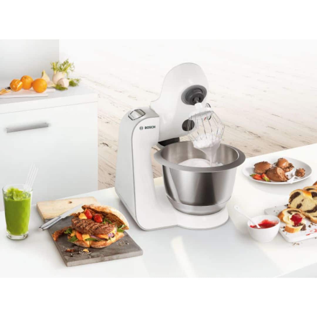 برند بوش، مدل MUM59M55، توان 1000 وات، ظرفیت کاسه 3.9 لیتر، جنس کاسه استیل ضدزنگ، 7 سطح تنظیم سرعت، عملکرد پالس، قلاب خمیرزن، همزن، سری‌های مختلف، خردکن، مخلوط‌کن، رنده، آب مرکبات‌گیری، فناوری MultiMotion Drive، سیستم ایمنی هوشمند، پایه‌های ضد لغزش .