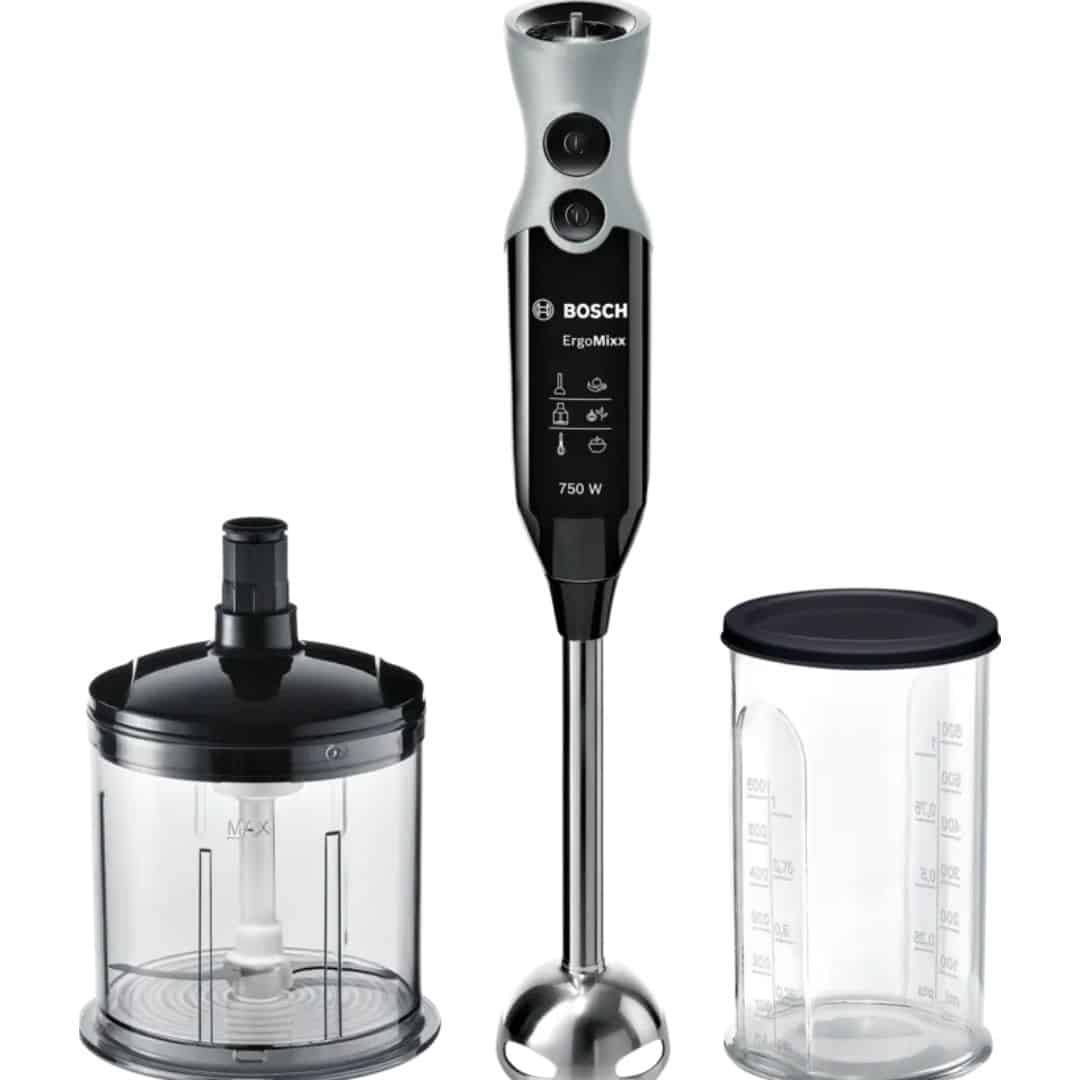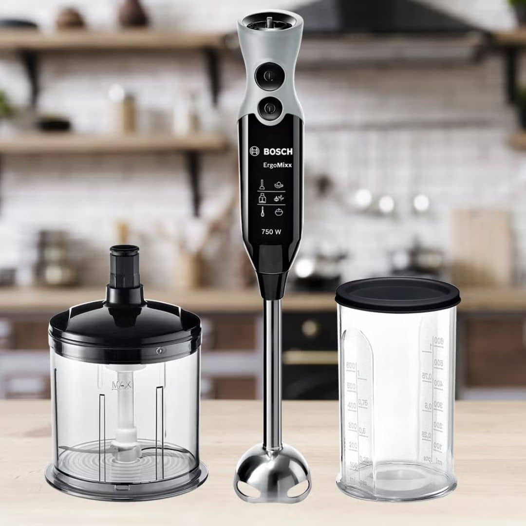 گوشت‌کوب برقی بوش مدل MSM67140،توان ۷۵۰ وات،رنگ مشکی و طوسی،۱۲ سرعت قابل تنظیم (Levels)،کاربرد دوگانه: گوشت‌کوب (پوره‌ساز) و خردکن،سیستم ضدپاشش (Anti Splash)،دکمه افزایش قدرت لحظه‌ای (Turbo)،دسته با پوشش نرم (Soft Grip)،تیغه چهار لبه تیز (Quattro Blade) از جنس استیل ضد زنگ،لیوان پلاستیکی ۶۰۰ میلی‌لیتری،قابلیت پوره کردن مواد داغ،ساخت کشور اسلوونیی