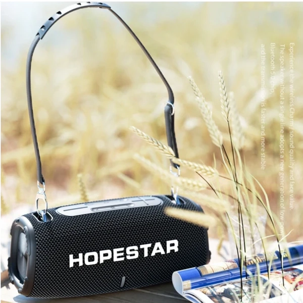 اسپیکر بلوتوثی قابل حمل Hopestar H50 (اچ 50)/ 20 وات/ بیس عمیق/ IPX6 (کاملاً ضد آب)/3000 میلی‌آمپر ساعت/تا 6 ساعت پخش مداوم/ بلوتوث 5.0/ TWS (اتصال همزمان دو اسپیکر)/ورودی AUX، کارت حافظه TF، U Disk (فلش مموری)/ایده‌آل برای فضای باز و مهمانی/ مقرون به صرفه و اقتصادی